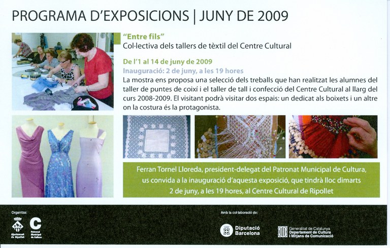 La mostra ens proposa una selecció dels treballs que han realitzat els alumnes del taller de puntes de coixí i el taler de tall i confecció del Centre Cultural al llarg del curs 2008-2009. El visitant podrà visitar dos espais. un dedicat als boixets i un altre on la costura és la protagonista.