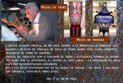 Exposició de peces de vidre tallades i gravades a mà per Antoni Ortega Vera.