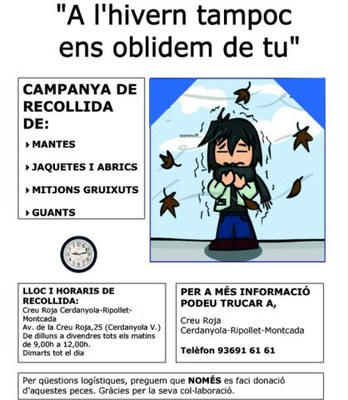 Recollida d’abrics, jaquetes i mantes. Horari de recollida de 9 a 15 i de 16 a 19 h. A l’avinguda de la Creu Roja, 25.