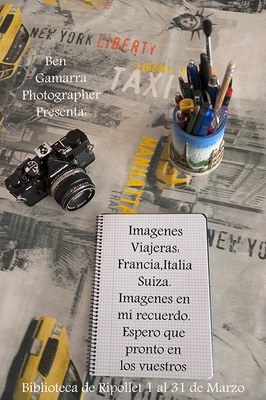 Exposició de fotografies de Ben Gamarra. Es tracta d'un recull d'imatges fetes per l'autor a París , Florència, Venècia, Siena i Suïssa. L'objectiu de Gamarra és incentivar els espectadors a conéixer altres indrets d'Europa. A la Sala d'Audiovisuals de la Biblioteca.
