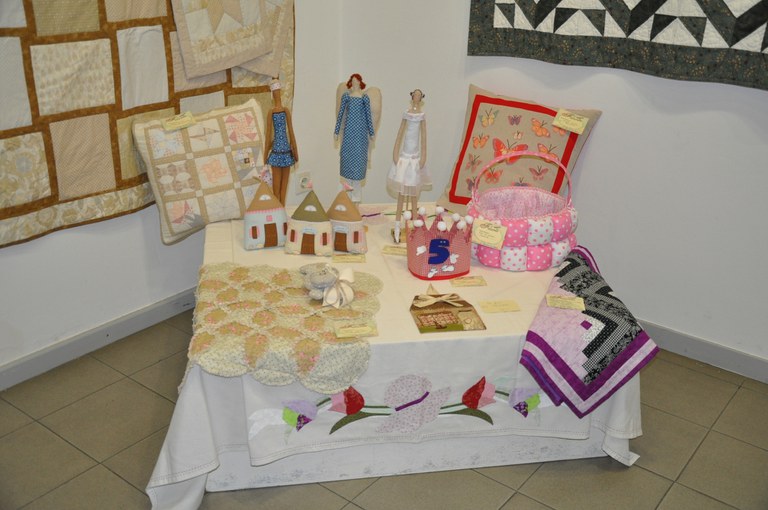 Mostra dels treballs del curs de Pachwork que organitza Filarte, tenda especialitzada en temes d'art textil.
