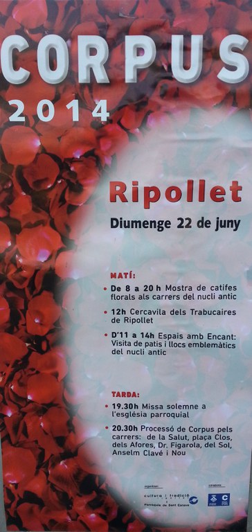 D'11 a 14 h i de 17.30 a 19.30 h, al carrer dels Afores, 14, mostra fotogràfica Corpus 2013, una selecció d'imatges realitzades pels membres de l'entitat Acció Fotogràfica Ripollet.