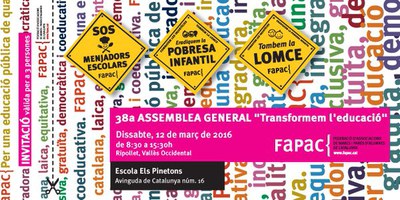 Trobada de la Federació d'Associacions de Mares i Pares d'Alumnes de Catalunya (FAPAC) sota el títol Transformem l'educació.