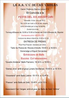 - XIX Aniversari de l'Associació de Veïns de Can Vargas