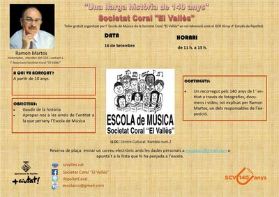 Taller ggratuït adreçat a infants a partir de 10 anys sobre la història de la Societat Coral "El Vallès".