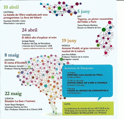 Conferència que posarà fi al curs escolar 2017/18 de l'Aula d'Extensió Universitària. Es tracta de "Antonio Vivaldi, el gran retratista musical de la natura", a càrrec de Joan Vives, professor d'Història de la música i divulgador musical.
