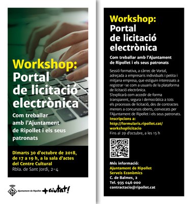 Les inscripcions es poden fer a través de http://formularis.ripollet.cat/workshoplicitacio fins al 29 d'octubre, a les 15h.