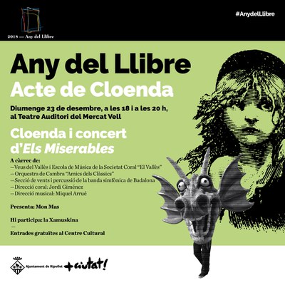 Cloenda i concert d’Els Miserables a càrrec de l’Escola de Música de la Societat Coral “El Vallès”, Veus del Vallès, l’orquestra de cambra Amics dels Clàssics i la secció de vents i percussió de la Banda Simfònica de Badalona. Presentació a càrrec de Mon Mas. Entrades, al Centre Cultural