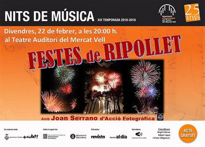 Actuació en directe de Grallers, Diables, Pastorets, Coral Tradicional i la Banda de la Escola de Música de la SCV. Selecció de fotos de les festes de Ripollet a càrrec de Joan Serrano, d'Acció Fotogràfica, amanida amb una col·lecció de peces musicals i la representació de diferents entitats ripolletenques.