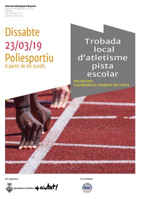 Trobada local d'atletisme de pista escolar. Inscripcions a través del coordinador d'esports del centre.