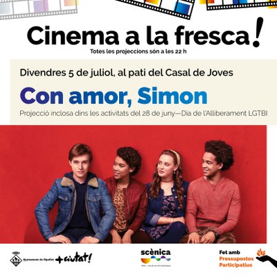 Projecció de la pel·lícula 'Com amor, Simon', al pati del Casal de Joves. Entrada gratuïta.