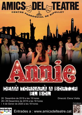 Adaptació del musical de Broadway Annie, amb la particularitat que la protagonista e´s ara una asolescent i compta amb una cançó addicional pròpia escrita expressament per l'ocasió. Entrades a amicsdelteatre.cat. Direcció d'Elena Vilalta. Preu: majors d'edat, 10 €; menors d'edat, 5 €.