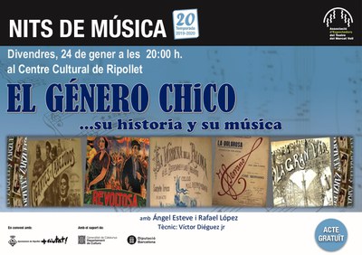 Sonaran peces de "La Gran Vía", "El Tambor de Granaderos", "Agua, azucarillos y aguardiente", "La Boda de Luis Alonso", "El Puñao de Rosas" o de "Gigantes y Cabezudos" i molt més, obres del denominat "Género Chico" perquè tenen tan sols un acte i una duració d'una hora.