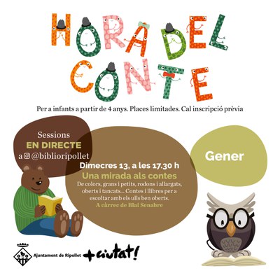 Hora del conte en línia, en directe a través d'instagram @BiblioRipollet. A càrrec de Blai Senabre. Per a infants a partir de 4 anys.