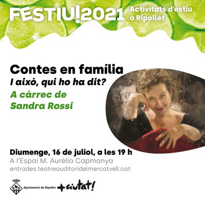 - Espectacle infantil a càrrec de Sandra Rossi. Per a infants a partir de 4 anys.
