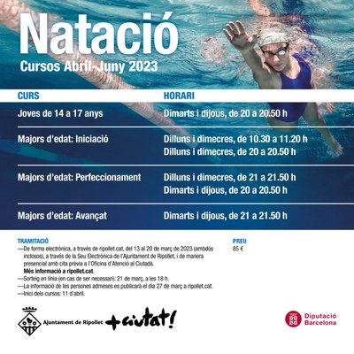 - https://www.ripollet.cat/actualitat/agenda/inscripcio-als-cursos-de-natacio-dadults-i-joves-3r-trimestre