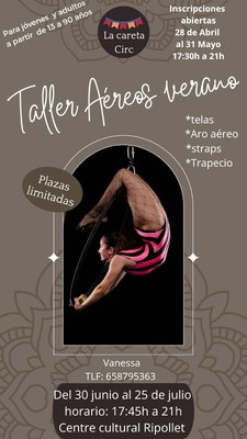 La Careta Teatre i Circ, es faràn tallers intesius de teatre i circ d'estiu per a nens i nenes i taller d'aeris per a joves i adults.