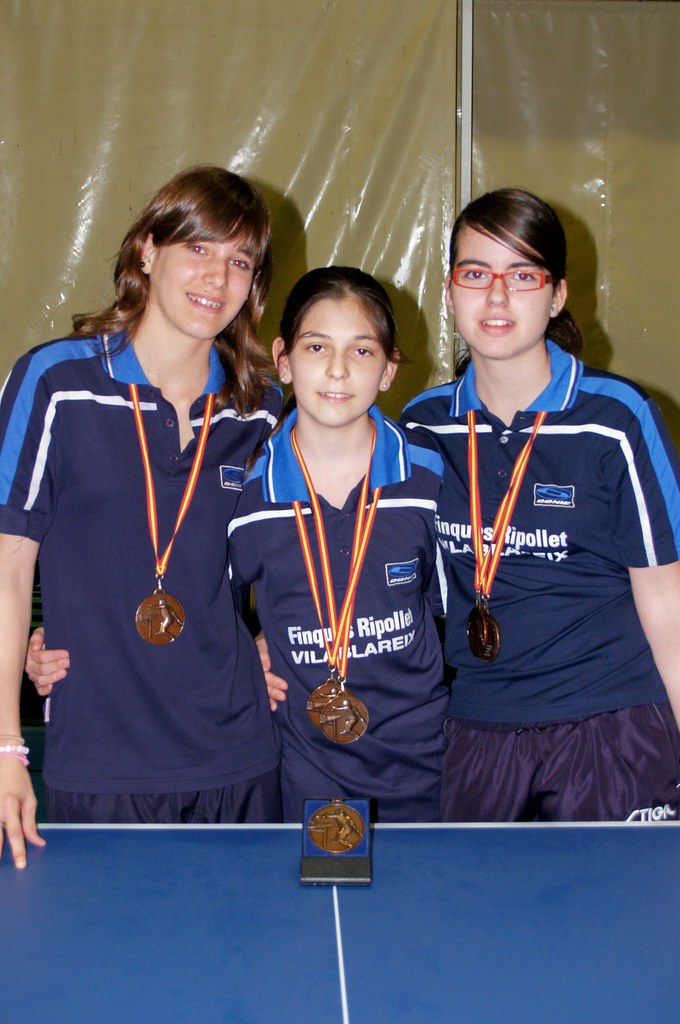 Les darreres setmanes s‘han celebrat a Punta Umbría (Huelva) i Burguillos (Sevilla) els Campionats d'Espanya Infantils i Sots-21, amb una destacada actuació dels equips del Club Tennis Taula Ripollet. Les jugadores del Finques Ripollet, Mireia Badosa, Meritxell Ferret i Berta López, aconseguien una molt meritòria 3a plaça al podi per equips en liderar sense cap derrota el seu grup de la primera fase, i disputar la semifinal amb el Cajasur Priego TM (Córdoba) que van perdre per 3-1.