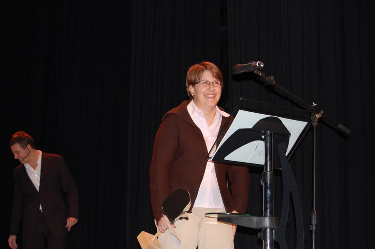 - Marta Colomina, d'Amics del Teatre, recollint el premi.