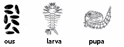 Els ous són negres i ovalats, d'uns 0.5 mm de llargària i 0.16 mm d'amplada. Les larves, de dimensions entre 1 i 10 mm de llargària, triguen de 5 a 10 dies per transformar-se en pupes, i aquestes dos dies per transformar-se en adults. Les larves s'alimenten de matèria orgànica suspesa en l'aigua.