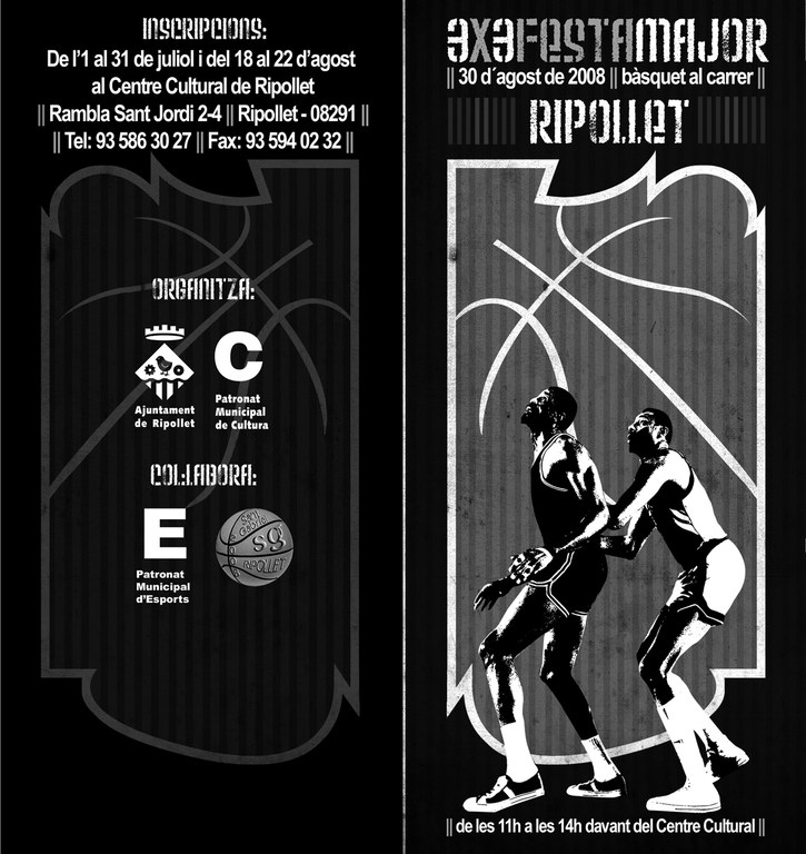El Patronat Municipal de Cultura en col·laboració amb el PAME i el Club Bàsquet Sant Gabriel han endegat, com una més de les activitats de Festa Major, el 1er Bàsquet al Carrer 3x3. Si voleu participar en aquesta iniciativa, que tindrà lloc el dissabte 30 d'agost d'11 a 14h davant del Centre Cultural, trobareu el formulari d'inscripció al mateix Centre o al document adjunt. El termini per apuntar-se és de l'1 al 31 de juliol i del 18 al 22 d'agost.