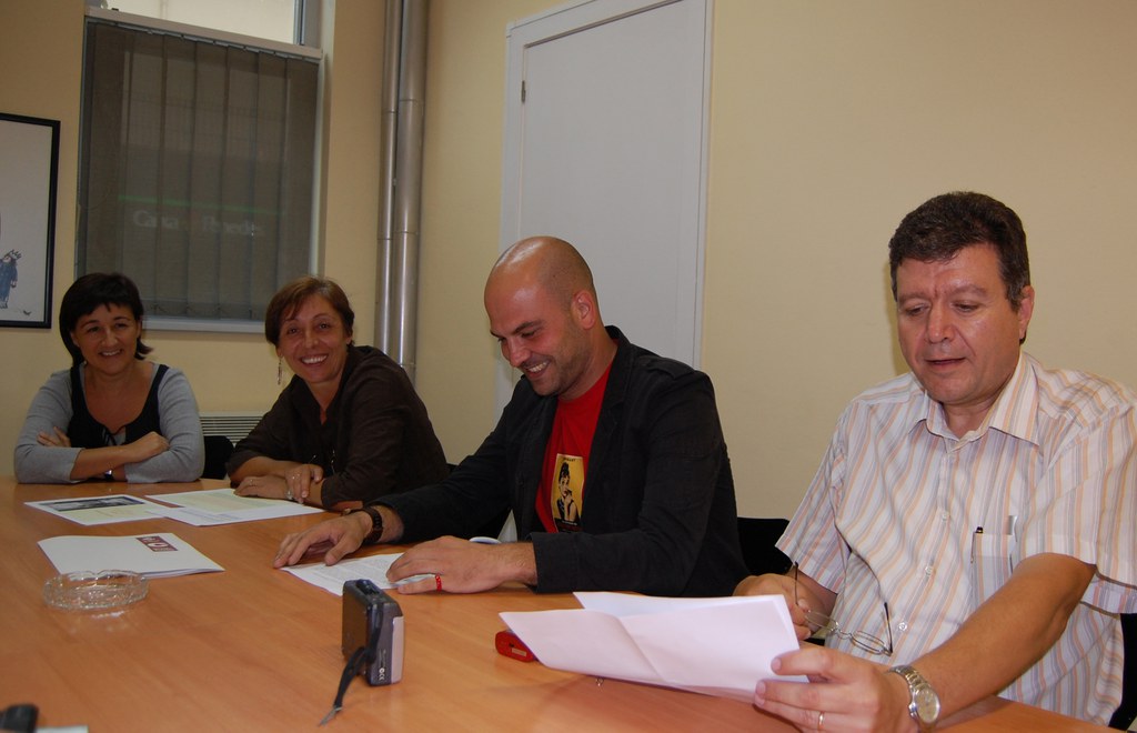 Foto: el regidor de Cultura, Ferran Tornel (al centre), acompanyat per Laura Roca i Joan Giménez, de la CRAC, i la tècnica de Cultura, Paqui Dorado.