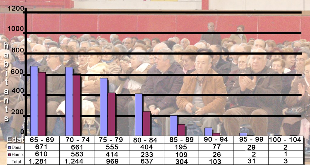 En edats avançades, les dones doblen en número els homes i els superen àmpliament en longevitat