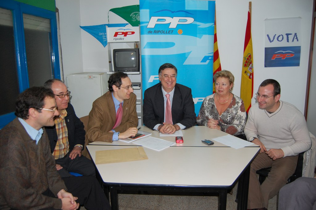 - D'esquerra a Dreta: els regidors, Víctor Diéguez, Francisco Jiménez i Pere Calviño, el president del PP a Barcelona, Antoni Bosch, la regidora Rosa Maria Hernández i el secretari general del PP a Barcelona, Alberto Villagrasa.