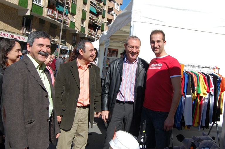 FOTO2: L'alcalde de Ripollet, Juan Parralejo, el regidor de Comerç, Joan Fandos i el president de la UBR, Joan Serrano, van saludar els comerciants participants al Ripostock durant el matí.