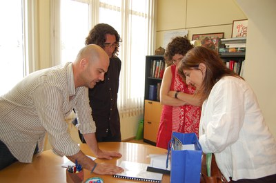Posteriorment, l'alcalde de Ripollet, Juan Parralejo, amb el regidor delegat del Pla per a la Convivència, Ferran Tornel han acompanyat a Imma Moraleda per les diferents dependències municipals juvenils com el Casal de Joves i el Kftí de Can Mas.