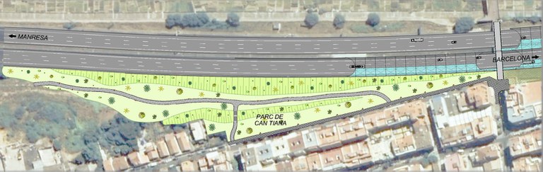 Aprofitant el rebaix del carril es refaria el parc, perquè actuï també de pantalla del soroll. A més, es preveu dividir-lo en dos terrasses, unides mitjançant una escala. Gràcies a aquesta distribució, s'aconsegueix reduir de forma important els pendents del parc, que no superaria el 8% d'inclinació, la qual cosa permetria l'accés al parc a tot tipus d'usuaris.