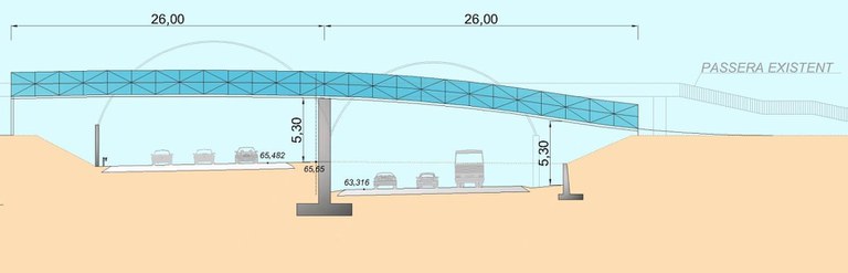 L'actual passarel·la seria substituïda per una de nova construcció de 5 metres d'amplada i 26 de llargària, amb una barana de 2 metres d'alçada, també de ferro i metacrilat. A més, amb el rebaix de 2 metres del carril de l'autopista, l'accés des de l'avinguda de la Creu Roja ja no seria tan pronunciat.