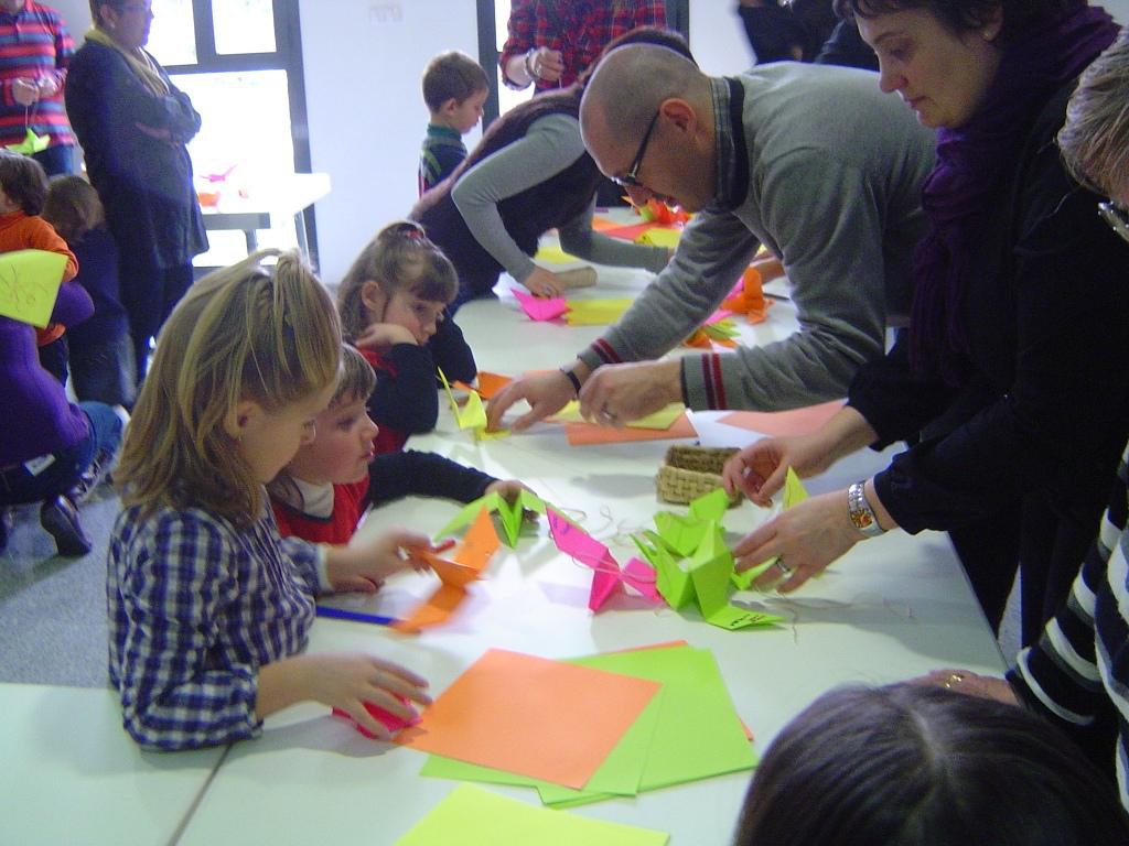 En primer lloc es va parlar del Dia Internacional de la Pau, que se celebra el 31 de gener, se'ls va explicar el conte de ‘Les mil grues' i, amb l'ajuda dels seus pares i mares, els infants van construir els seus propis coloms de la pau. Després hi van escriure un desig i tots junts van penjar els seus coloms i desitjos a les oliveres de la zona enjardinada del Molí d'en Rata.