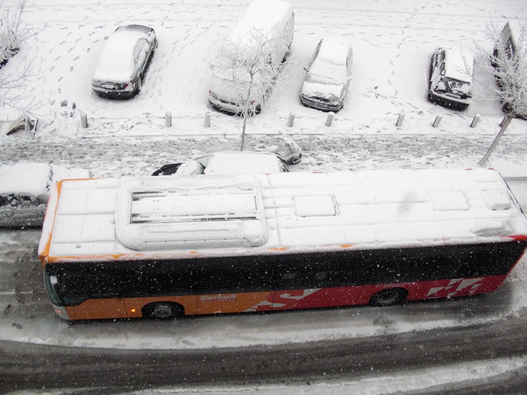 Foto 4: Molts vehicles, com aquest autobús al carrer de Sant Josep, s'han quedat immobilitzats a la carretera