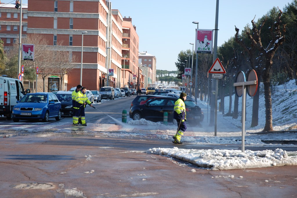 Des de primera hora del matí, una trentena de treballadors i set vehicles de l'empresa Urbaser, a banda de la Brigada Municipal, en coordinació amb la Policia Local, han treballat per restablir la normalitat després de la nevada d'ahir. Encara queden plaques de gel als carrers, tot i el sol que llueix aquest matí i es recomana prudència.