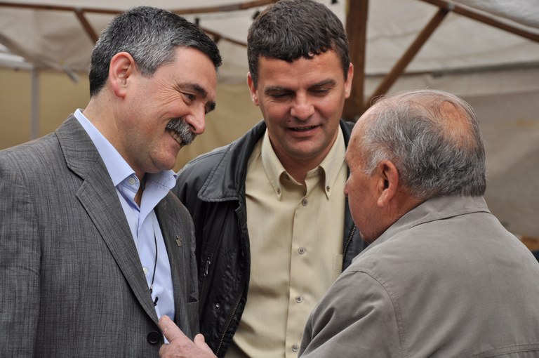 FOTO3: Xavier Peñarando, segon tinent d'alcalde i Joan Fandos, regidor de Comerç, conversen amb un veí que gaudia de la diada.