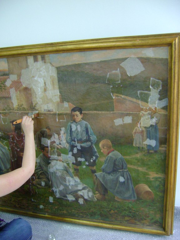 En aquest cas, i mitjançant un conveni entre la Diputació i l'Escola d'Arts i Oficis de Barcelona, restauradors professionals, acompanyats d'un grup d'alumnes en pràctiques de l'especialitat de pintura, es faran càrrec de la restauració de tres olis de Solà que presenten llacunes, descamació o corc a la fusta.