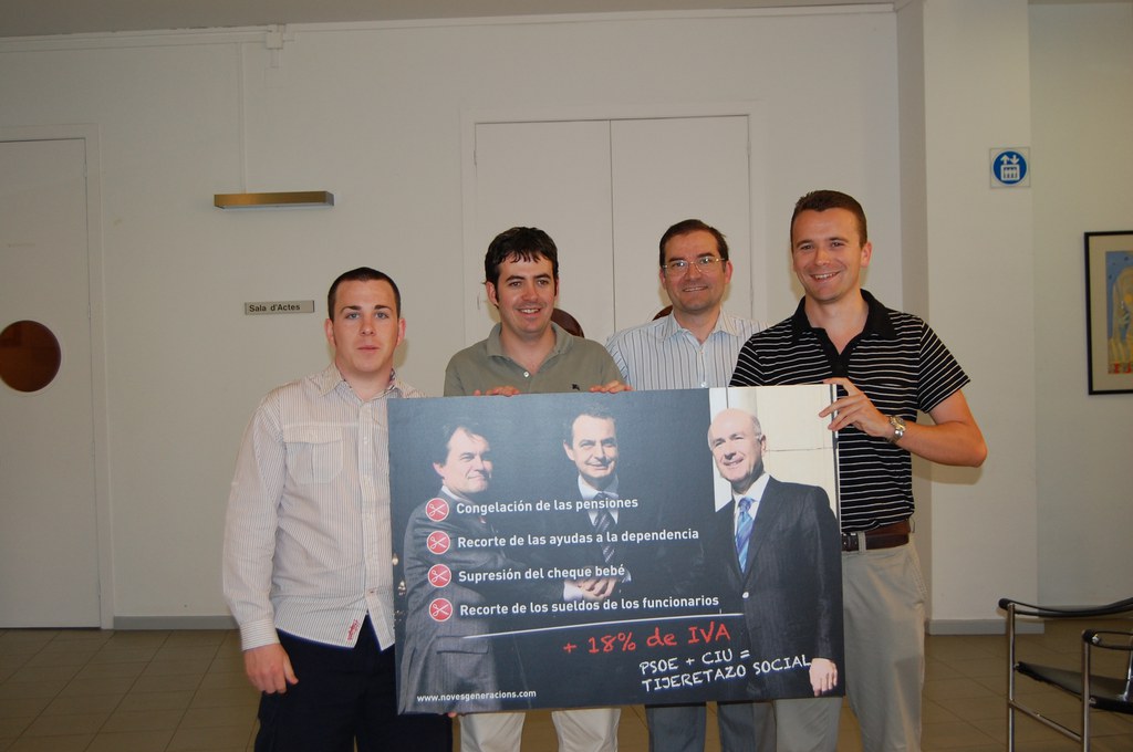 El passat divendres, 18 de juny, el president de NNGG a Catalunya, José Antonio Coto va presentar la nova companya de la seva formació "PSOE+CiU = tijeretazo social", acompanyat de Francisco Javier Tàpia, president de la secció comarcal i de Ripollet i Manel Hernández, president de la formació juvenil a Cerdanyola. La campanya se centra en criticar les mesures anticrisi del govern central com ara la congelació de les pensions i el retall de les ajudes a la dependència i dels sous dels funcionaris."