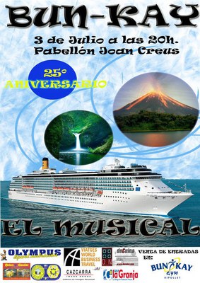 El gimnàs Bun-Kay oferirà el proper dissabte, 3 de juliol, al pavelló Joan Creus l'espectacle Bun-kay, El musical, amb motiu de la celebració del seu 25è aniversari. Ideat per la directora tècnica del centre, en aquest musical hi participen unes 170 persones, totes elles sòcies del gimnàs. L'espectacle combina les diferents activitats que es realitzen al centre, des del karate, el hip-hop o les classes de ball, fins a l'spinning, el fitness o el pilates.