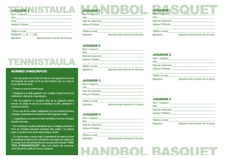 Obertes les inscripcions per a les activitats de bàsquet, handbol i tennis taula de la Festa Major