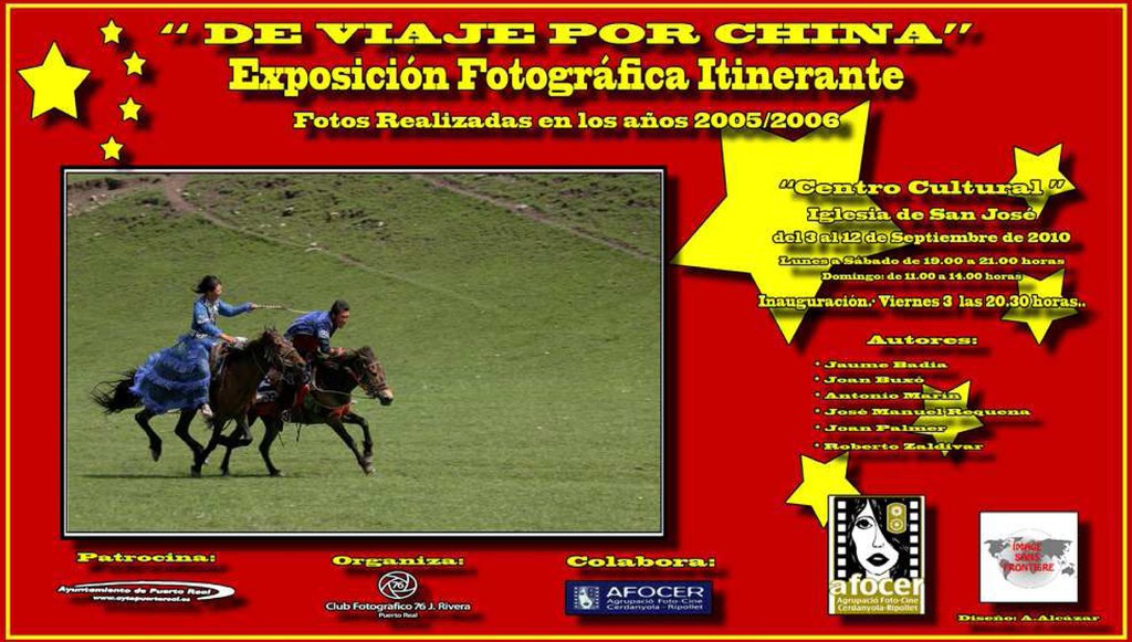 Del 3 al 12 de Setembre, al Centro Cultural Iglesia de San José, a Puerto Real (Cadis), s'exhibeix la exposició Imatges de Xina, organitzada per el Club Fotográfico Juan Rivera 76. Aquesta exposició compta amb 6 autors espanyols, dels quals 4 són socis d'AFOCER: Jaume Badia, Antoni Marin, Joan Buxó, i Josep Manel Requena, i els autors Joan Palmer, president de la Confederación Española de Fotografia i Roberto Zaldívar, president de la Federación Fotográfica del Ebro. Tots ells, van realitzar durant els anys 2005 i 2006, diversos viatges fotogràfics a diferents regions de Xina, organitzats per la Chinese Photographic Association i per Image sans Frontière.