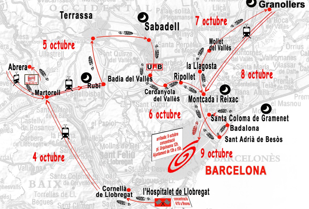 La Marxa es va iniciar el passat dilluns, 4 d'octubre, a Hospitalet i travessarà, durant 6 dies, diverses comarques i localitats de Catalunya. La tarda del 6 d'octubre, cap a les 17 hores, passarà per Ripollet. A la població, aquesta iniciativa l'ha liderat el COP-CpR, amb el suport de la Plataforma Los lunes al sol, diversos sindicats i formacions polítiques, així com entitats i ciutadans a títol individual.