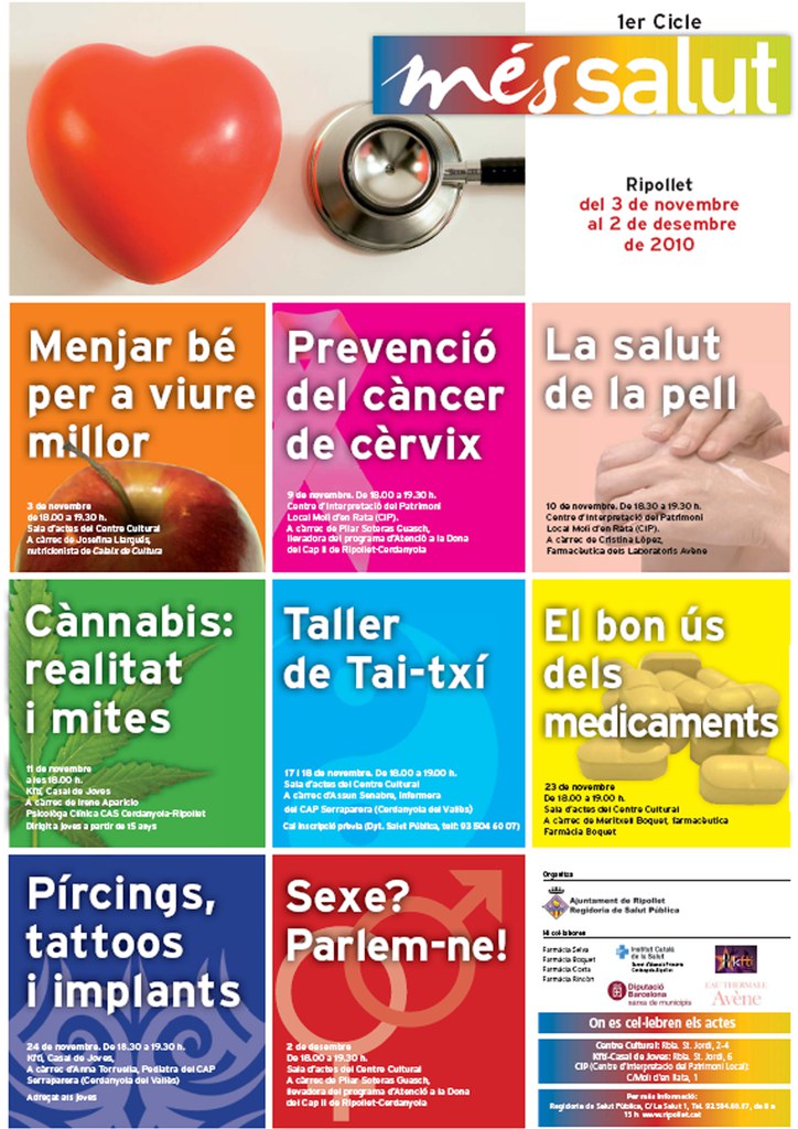- Dimarts 23 de novembre - 'El bon ús dels medicaments' a càrrc de Meritxell Boquet, farmacèutica de la Farmàcia Boquet. Al Centre Cultural a les 18 h.