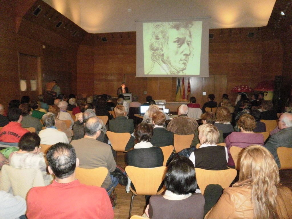 Més d'un centenar de persones van assistir el passat divendres, 29 d'octubre, a la sessió de Nits de Música organitzada per l'Associació d'Espectadors del Teatre del Mercat Vell. La sessió, coordinada per Ángel Esteve i Rafael Lòpez, portava com a títol 'Chopin, Schumann i Miguel Hernández'. L'acte va comptar amb la participació dels membres del taller de poesia del Centre de Formació d'Adults Jaume Tuset, que van recitar poemes i van explicar la vida de Miguel Hernández.