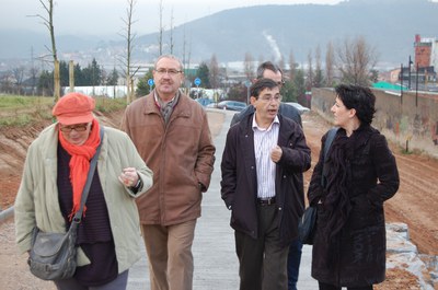 FOTO1: Un moment de la visita d'obres amb l'alcalde de Ripollet, Juan Parralejo i les regidores de Medi Ambient i Urbanisme, Gemma Edo (a l'esquerra) i Rosa Maria Martín (dreta).