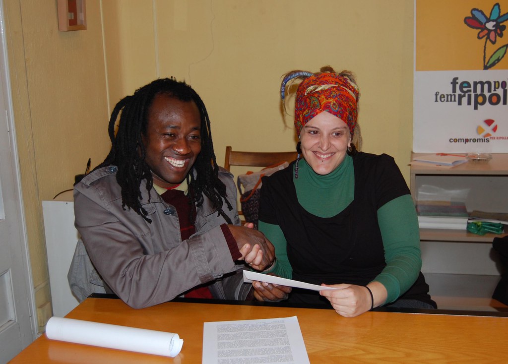 Foto: Rashid Abubakar, president de CEHDA i la regidora del COP-CpR, Maria Ruiz.