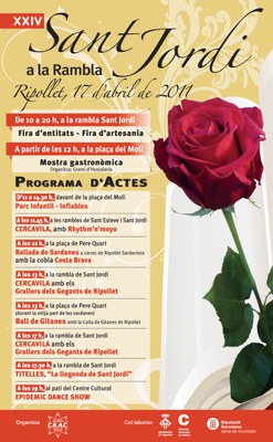 Com ja és tradició, el diumenge abans de la Diada de Sant Jordi, la CRAC organitza el Sant Jordi a la Rambla, que enguany arriba a la seva 24a edició. Serà el 17 d'abril i comptarà amb la col·laboració de diverses d'entitats. De 10 del matí a 20 hores es podrà passejar pels estands d'entitats i artesania de la rambla. Com ja és habitual, durant el matí, la plaça del Molí acollirà la Mostra Gastronòmica, organitzada pel Gremi d'Hostaleria amb la col·laboració de la Regidoria de Comerç, Indústria i Turisme. Allà també hi haurà un espai dedicat als més petits, amb inflables i altres jocs.