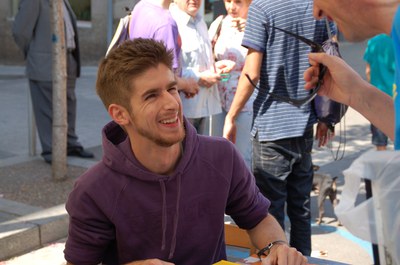 FOTO: Aleix Saló, signant al Racó de les Lletres Locals durant el Sant Jordi a la Rambla de 2011.