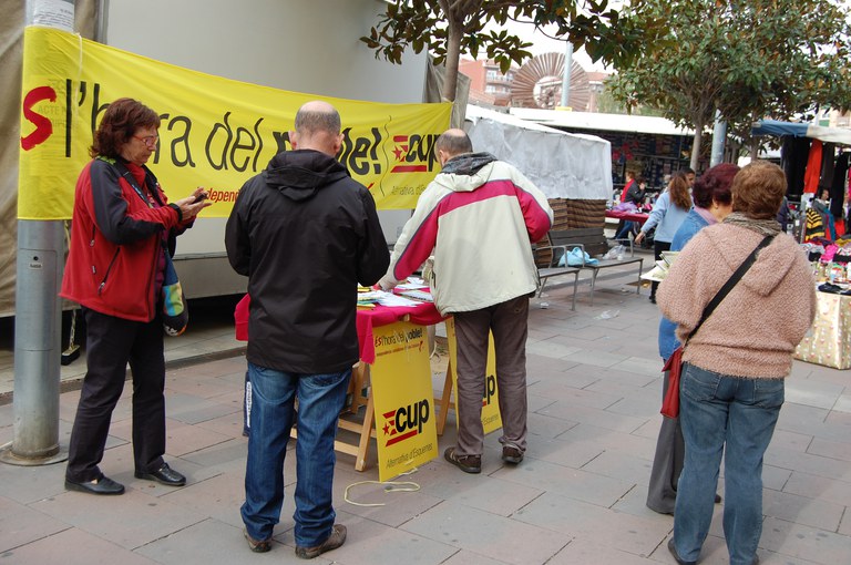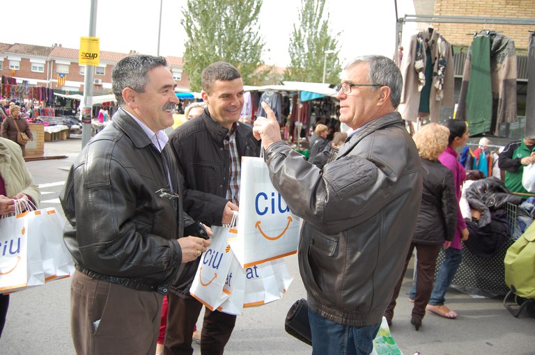 Diverses formacions polítiques van coincidir aquest dimecres, 21 de novembre, al mercat setmanal per fer campanya de cara a les eleccions al Parlament de Catalunya del proper diumenge, 25 de novembre. Regidors, militants i simpatitzants del PSC, CiU, ICV-EuiA, la CUP i Plataforma per Catalunya han repartit la seva propaganda electoral entre els ciutadans que passaven pel mercat setmanal.