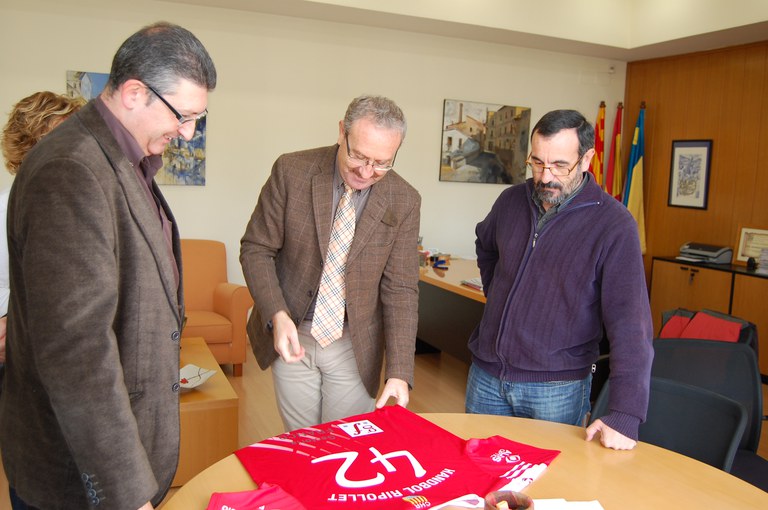 Directius del Club Handbol Ripollet van presentar el passat dijous, 22 de novembre, a l'alcalde de Ripollet, Juan Parralejo, la samarreta de commemoració del 40 aniversari de l'entitat. Una samarreta que, a banda de portar en un extrem l'antic escut del club, porta a l'esquena la bandera de Ripollet, juntament amb la de Catalunya.